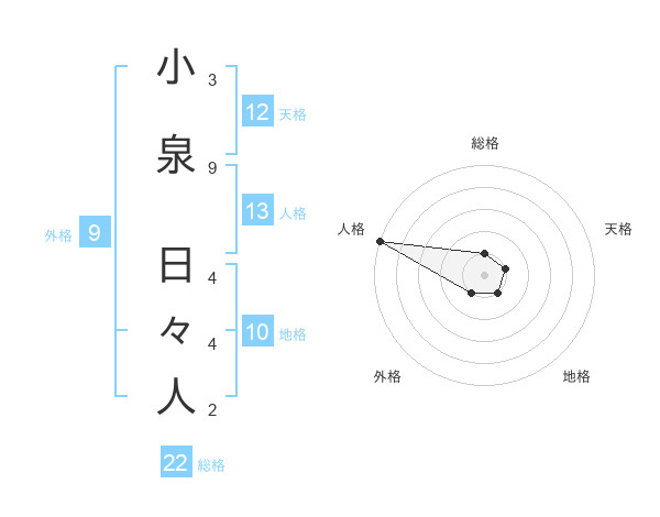 小泉 日々人さんを姓名の画数から五運を鑑定