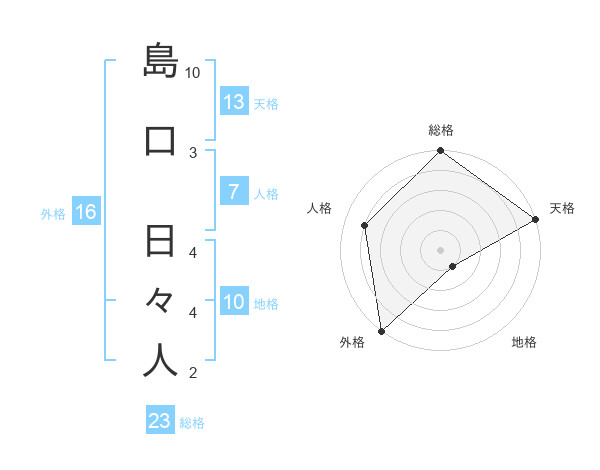 島口 日々人さんの総格は23画の5点!