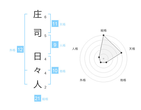 庄司 日々人さんの総格は21画の5点!