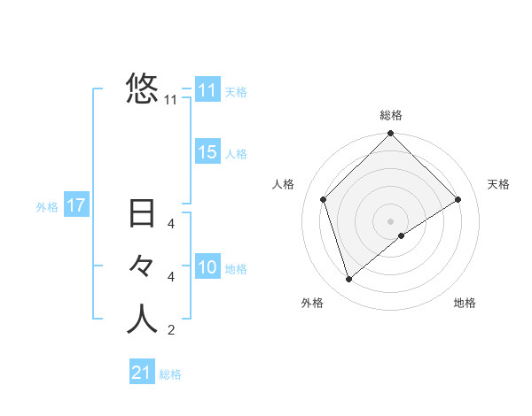 悠 日々人さんの外格は17画の4点!