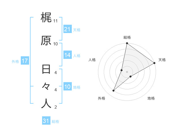 梶原 日々人さんを姓名の画数から五運を鑑定