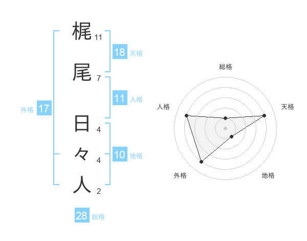 梶尾 日々人さんを姓名の画数から五運を鑑定