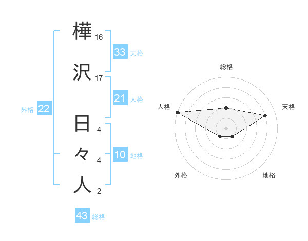 樺沢 日々人さんを姓名の画数から五運を鑑定