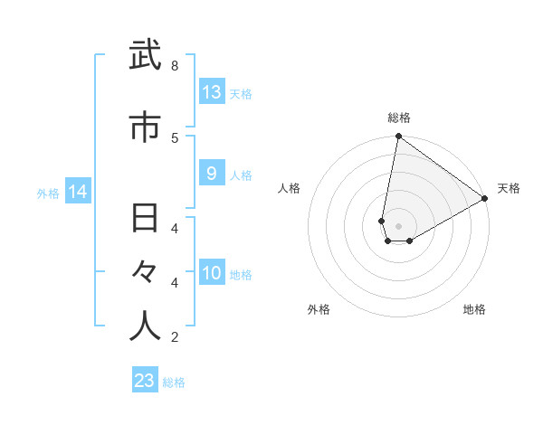 武市 日々人さんの総格は23画の5点!