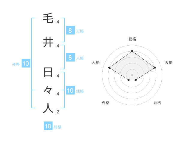 毛井 日々人さんの総格は18画の4点!