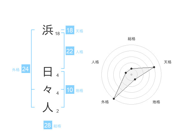 浜 日々人さんの外格は24画の5点!