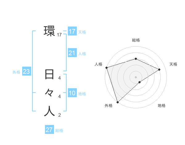環 日々人さんの人格は21画の5点!