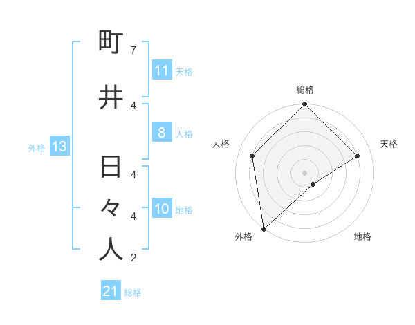 町井 日々人さんの外格は13画の5点!