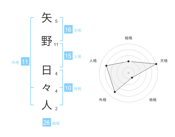 矢野 日々人さんの外格は11画の4点!