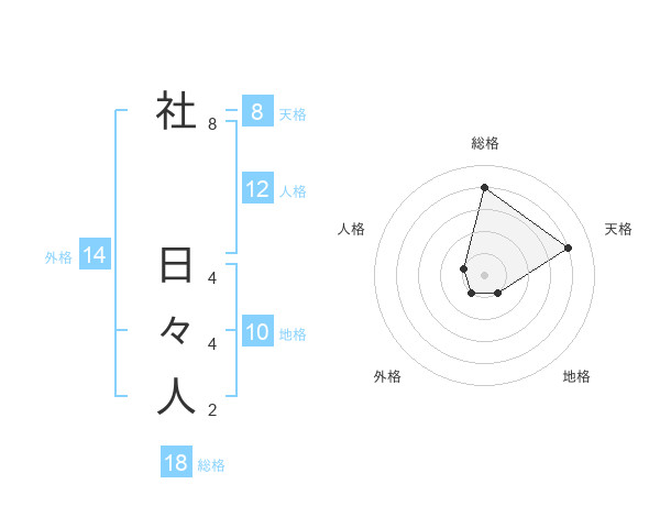 社 日々人さんの総格は18画の4点!