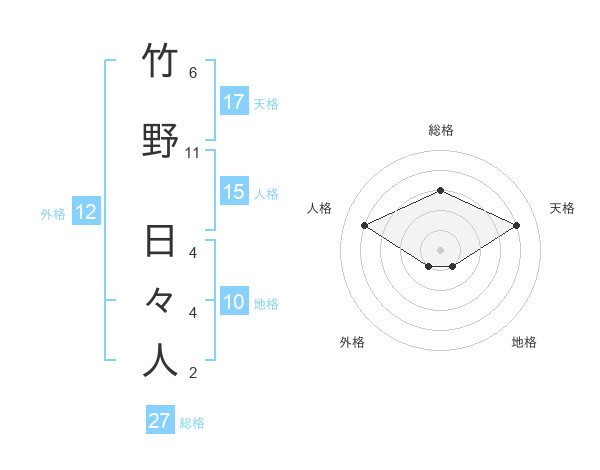 竹野 日々人さんの天格は17画の4点!