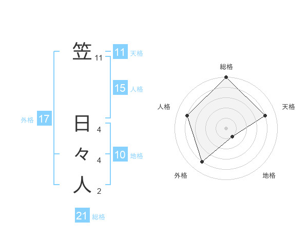 笠 日々人さんの総格は21画の5点!