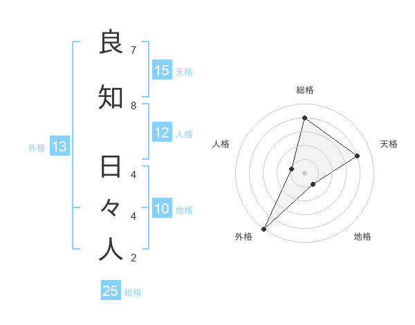 良知 日々人さんの天格は15画の4点!