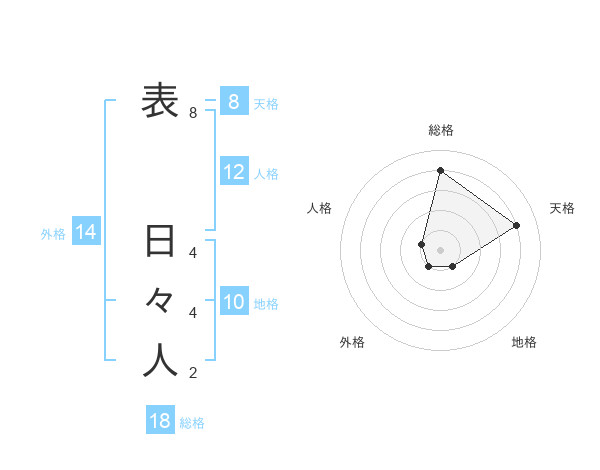 表 日々人さんの総格は18画の4点!
