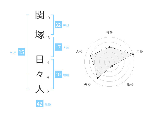 関塚 日々人さんを姓名の画数から五運を鑑定