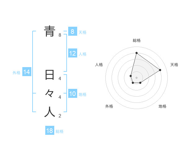 青 日々人さんの総格は18画の4点!