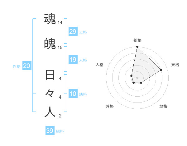 魂魄 日々人さんの総格は39画の5点!