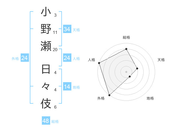 小野瀬 日々伎さんを姓名の画数から五運を鑑定