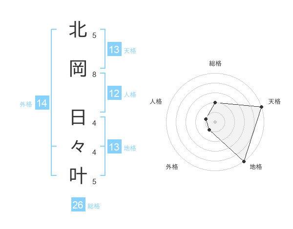 北岡 日々叶さんの天格は13画の5点!