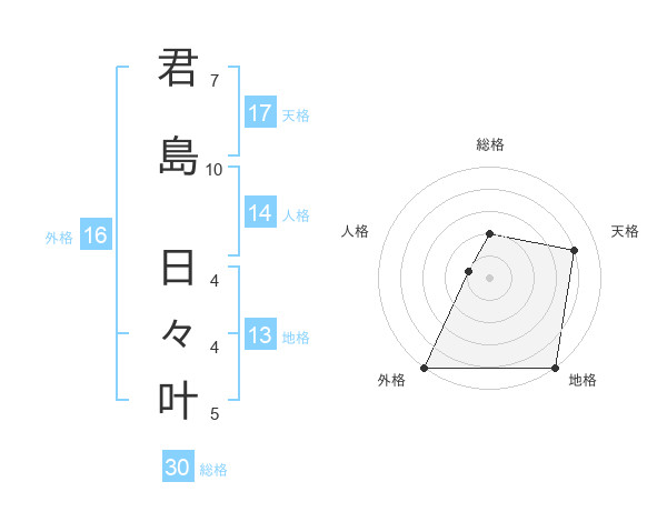 君島 日々叶さんを姓名の画数から五運を鑑定