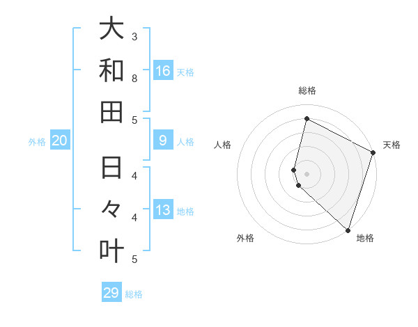 大和田 日々叶さんを姓名の画数から五運を鑑定