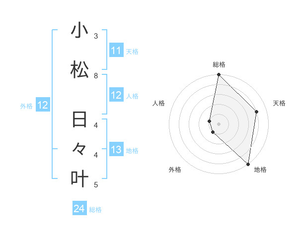 小松 日々叶さんを姓名の画数から五運を鑑定