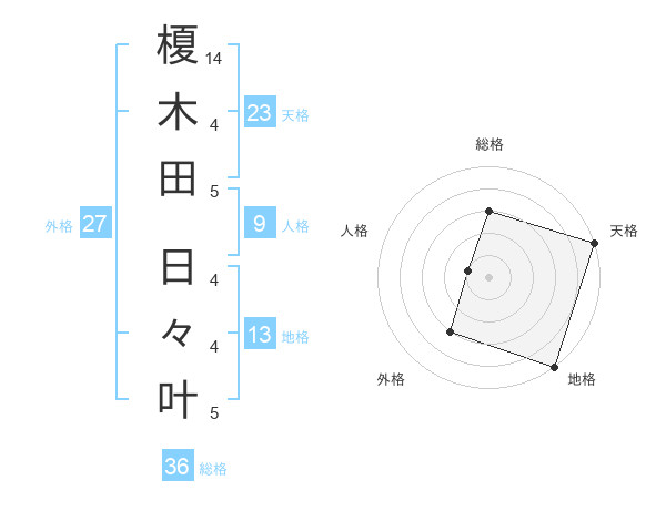 榎木田 日々叶さんの天格は23画の5点!