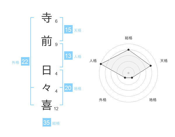 寺前 日々喜さんを姓名の画数から五運を鑑定