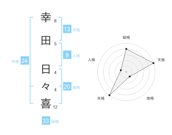 幸田 日々喜さんを姓名の画数から五運を鑑定