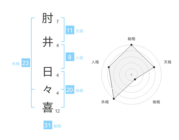 肘井 日々喜さんを姓名の画数から五運を鑑定