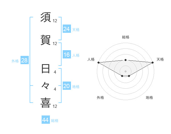 須賀 日々喜さんを姓名の画数から五運を鑑定