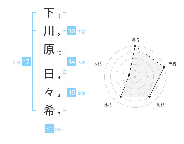 下川原 日々希さんを姓名の画数から五運を鑑定