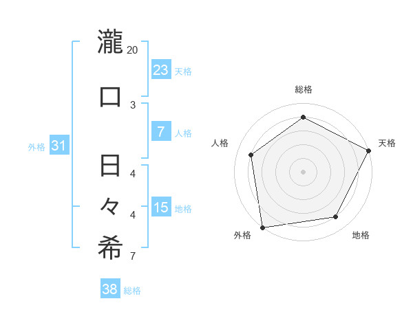瀧口 日々希さんを姓名の画数から五運を鑑定