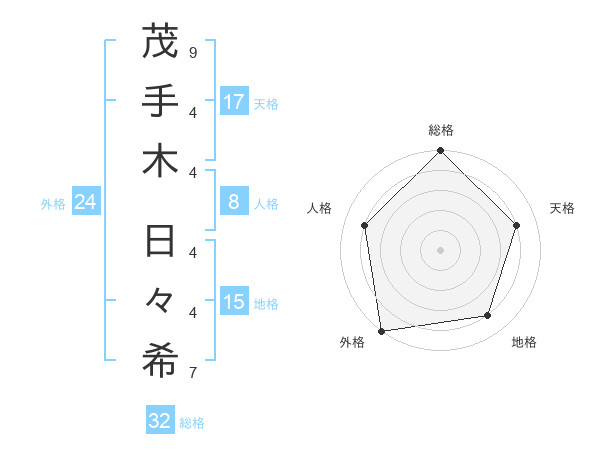 茂手木 日々希さんを姓名の画数から五運を鑑定