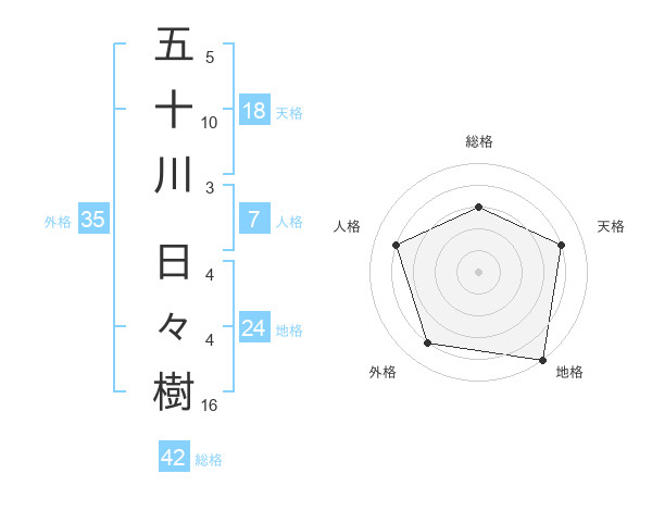 五十川 日々樹さんを姓名の画数から五運を鑑定