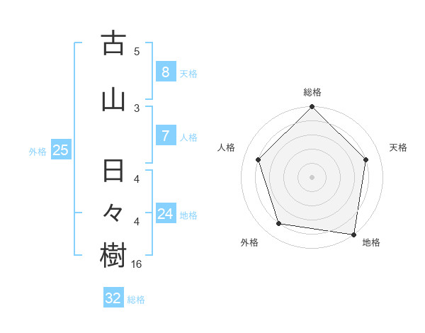 古山 日々樹さんを姓名の画数から五運を鑑定