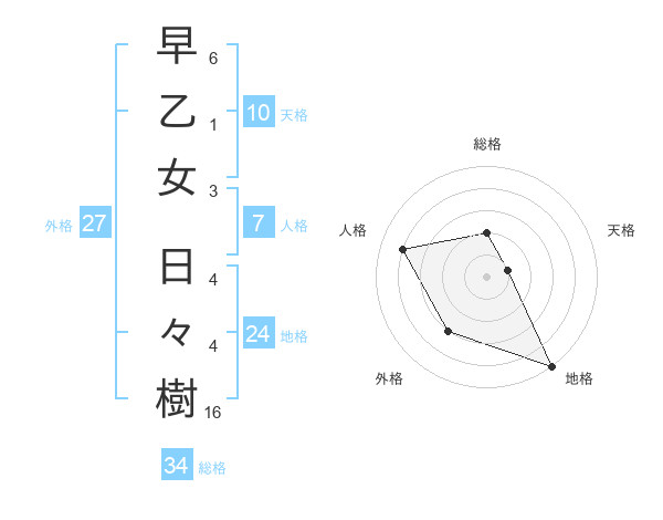 早乙女 日々樹さんを姓名の画数から五運を鑑定