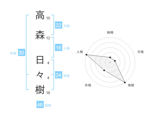 高森 日々樹さんを姓名の画数から五運を鑑定