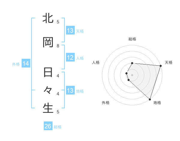 北岡 日々生さんの地格は13画の5点!