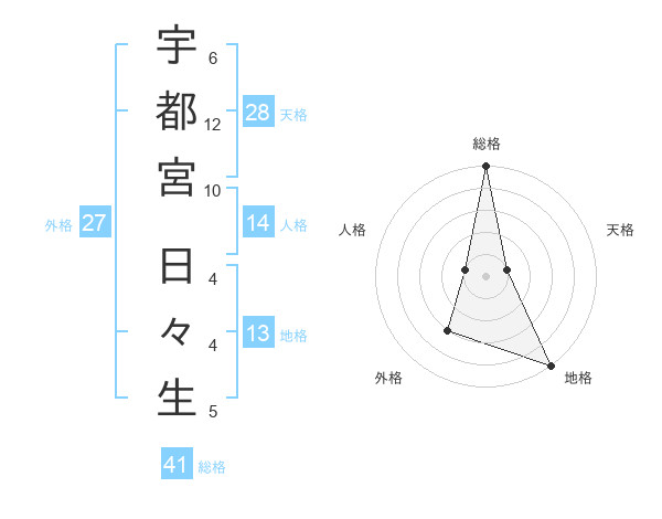 宇都宮 日々生さんを姓名の画数から五運を鑑定