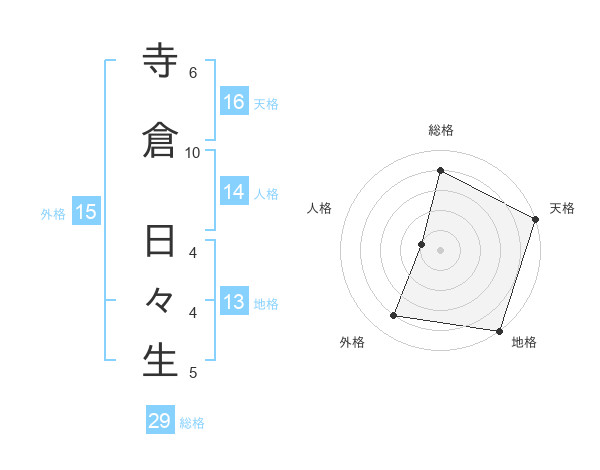 寺倉 日々生さんを姓名の画数から五運を鑑定