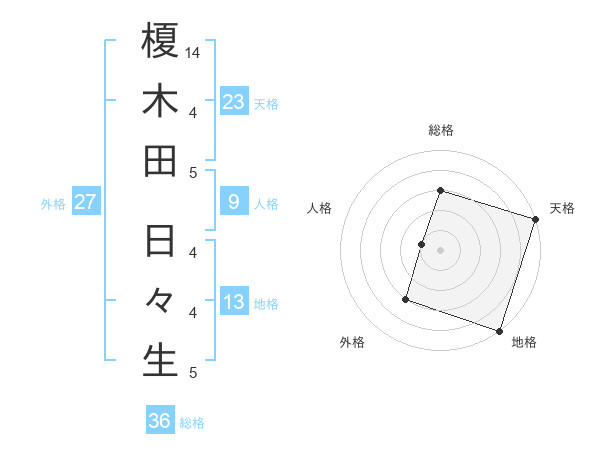 榎木田 日々生さんの天格は23画の5点!
