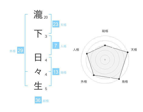 瀧下 日々生さんを姓名の画数から五運を鑑定