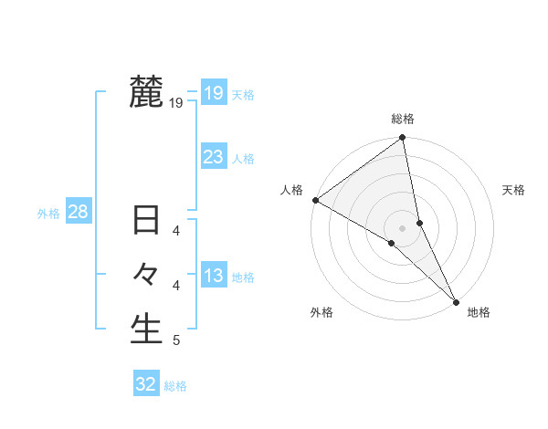 麓 日々生さんの総格は32画の5点!