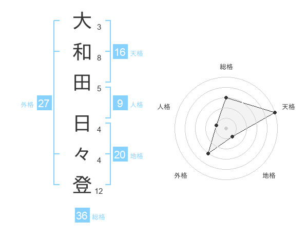大和田 日々登さんを姓名の画数から五運を鑑定
