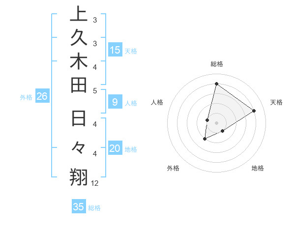 上久木田 日々翔さんを姓名の画数から五運を鑑定
