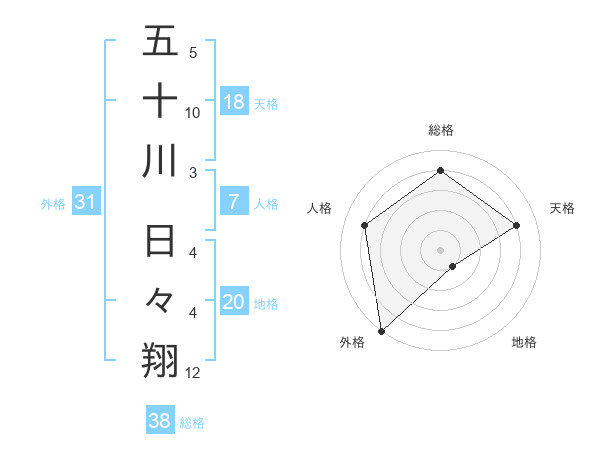五十川 日々翔さんを姓名の画数から五運を鑑定