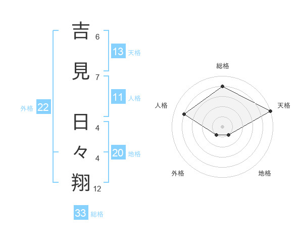 吉見 日々翔さんの総格は33画の4点!