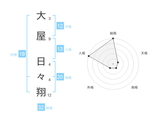 大屋 日々翔さんの総格は32画の5点!