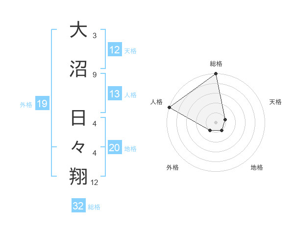 大沼 日々翔さんを姓名の画数から五運を鑑定